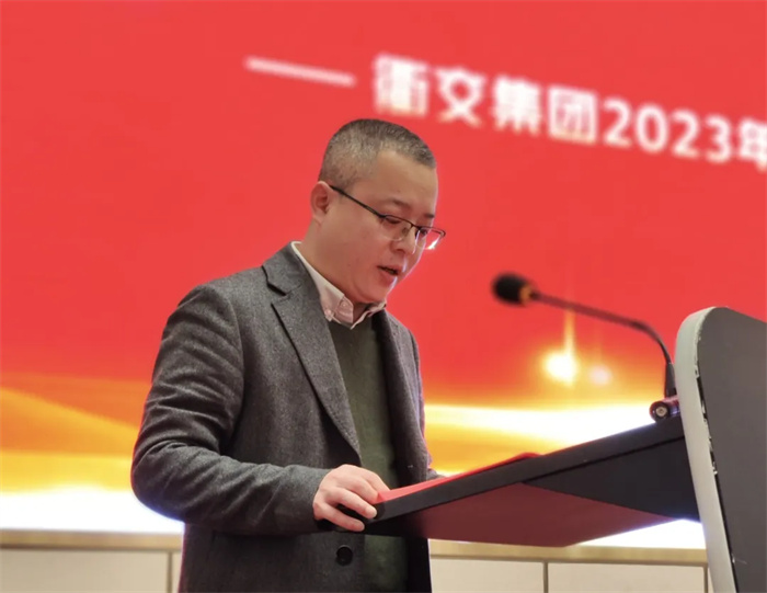 衢交集團總經理肖華勇在會上向大家作了2023年度總結和新年工作動員部署報告。從經營開發(fā)、項目管理、風控能力、技術研發(fā)、資質就位升級、品牌建設六個方面對2023年度的工作進行了總結。圍繞新年度工作,從“市場經營、品質工程、工程經濟、制度建設、人才培養(yǎng)、團隊建設”六個維度做了部署,發(fā)出了動員令。