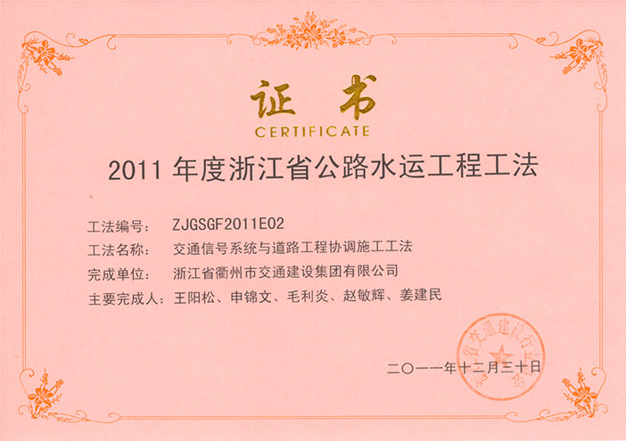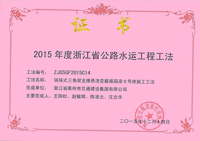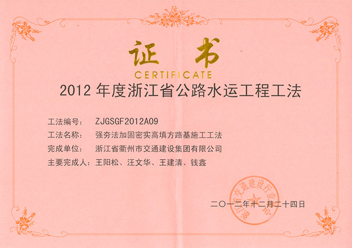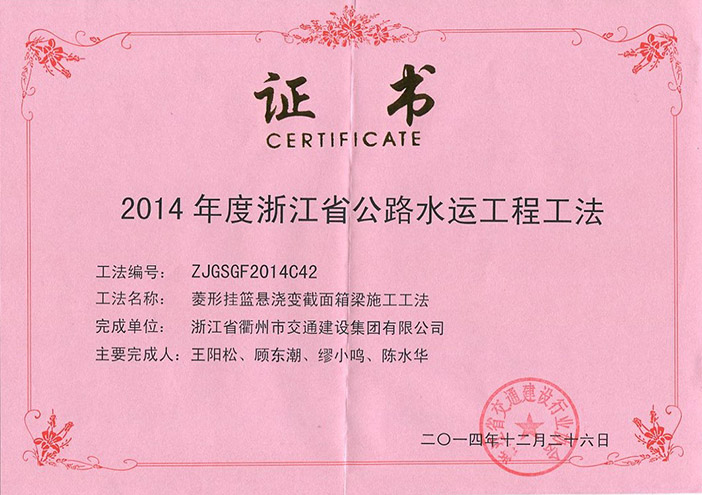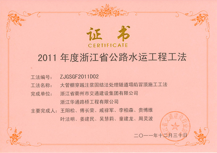 專利證書 工程工法