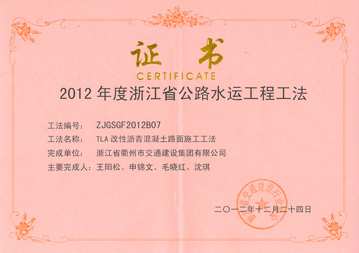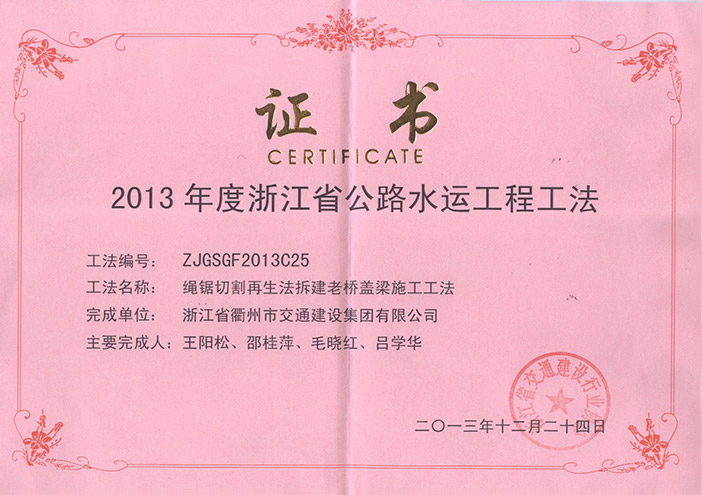 專利證書 工程工法